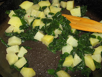 Simplu de tot. Si va spune asta o persoana care nu se pricepe deloc la aluaturi, ba chiar inregistreaza esecuri serioase. Nu va povestesc in ce ordine am amestecat ingredientele pentru aluat pentru ca sunt sigura ca aveti alte surse de amuzament, cert este ca se amesteca oul cu apa minerala si uleiul, se adauga drojdia si faina si se framanta usor. Daca aluatul vi se pare prea uleios mai puteti adauga faina, dar nu foarte multa, ci doar cat sa-si pastreze structura elastica (v-am spus ca e mai complicat cu aluaturile; no worry- acesta este nepretentios). In timp ce aluatul s-a dospit (vreo 30 de minute), am pregatit cele 2 umpluturi. Aici nu am cantitati- totul e din ochi si gust: am avut dovleac si mere rase congelate pe care le-am aruncat in 2 tigai. Am pus cateva linguri de melasa si am amestecat constiincios pana ce am obtinut o pasta. Dupa ce s-au racit cele 2 amestecuri am adaugat scortisoara si nuca tocata grobian.